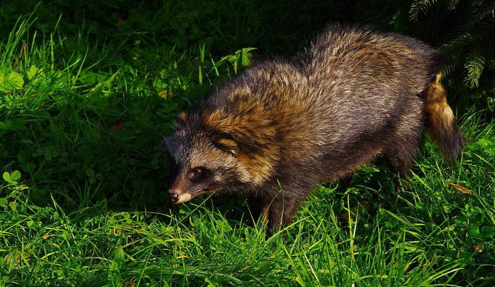 Ich habe den Marderhund in "meinem" Fotogebiet beobachten können. Man sollte Abstand halten, wie bei allen Wildtieren. Aber wenn man sich ruhig verhält und nicht bewegt, kann man auch diese Tiere wunderbar beobachten. Die Tiere sind ab Oktober / November wunderbar in ihrem Winterfell anzusehen.