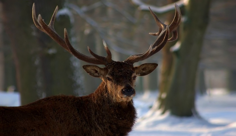 Rotwild habe ich hauptsächlich im Harz gesehen und aufgenommen. An eine Begegnung erinnere ich mich besonderes gern. Es war im November und es lag schon Schnee. Ich war im Wald unterwegs und ging um eine Biegung, da stand er, ein Rothirsch in seiner ganzen Pracht. Ein 14-Ender, eigentlich hatte er auf der einen Seite 8 und auf der anderen Seite 7 Enden. Ein wunderschönes Tier. Er sah mich und blieb stehen, ich natürlich auch. Die Entfernung betrug 10 m maximal. Ich hatte ein 300 mm-Objektiv drauf und bekam den Hirsch kaum ganz drauf. Nach einiger Zeit des Beobachtens, kam der Rothirsch auf mich zu. Ich ging ein Stück zurück, bis er stehen blieb. Dann ging ich wieder auf ihn zu, und er ging ein Stück zurück. Das gab mir die Möglichkeit abzubiegen, damit diese Begegnung nicht schlecht für uns beide ausging.